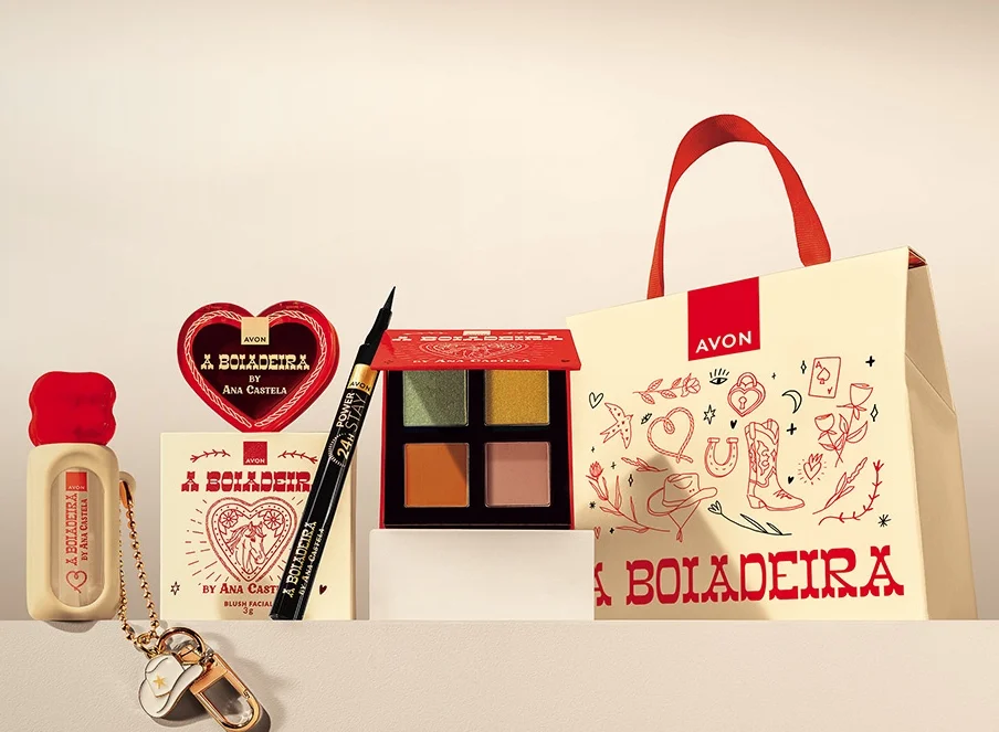 Além disso, todos os cosméticos seguem a identidade visual, paleta de cores e tatuagens de Ana Castela. A cantora comemorou o lançamento; “Lançar minha primeira linha de maquiagem é a realização de um sonho. Para mim, a maquiagem é uma forma de expressar quem eu sou, é sobre identidade. Eu participei de todo o processo de criação com a Avon – desde o conceito, embalagem… é a minha essência em forma de make.”