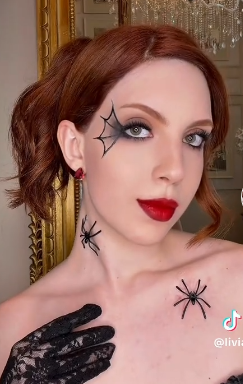 Lívia Nhezoto, famosa por suas dicas de maquiagem, decidiu fazer uma caracterização mais simples. A influenciadora fez uma maquiagem inspirada em aranhas, que somou mais de 400 mil visualizações, ensinando maquiagens com tampinhas e palitos de dente.